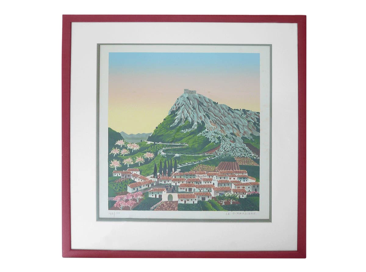- Lithographie Montségur au printemps à vendre encadrée