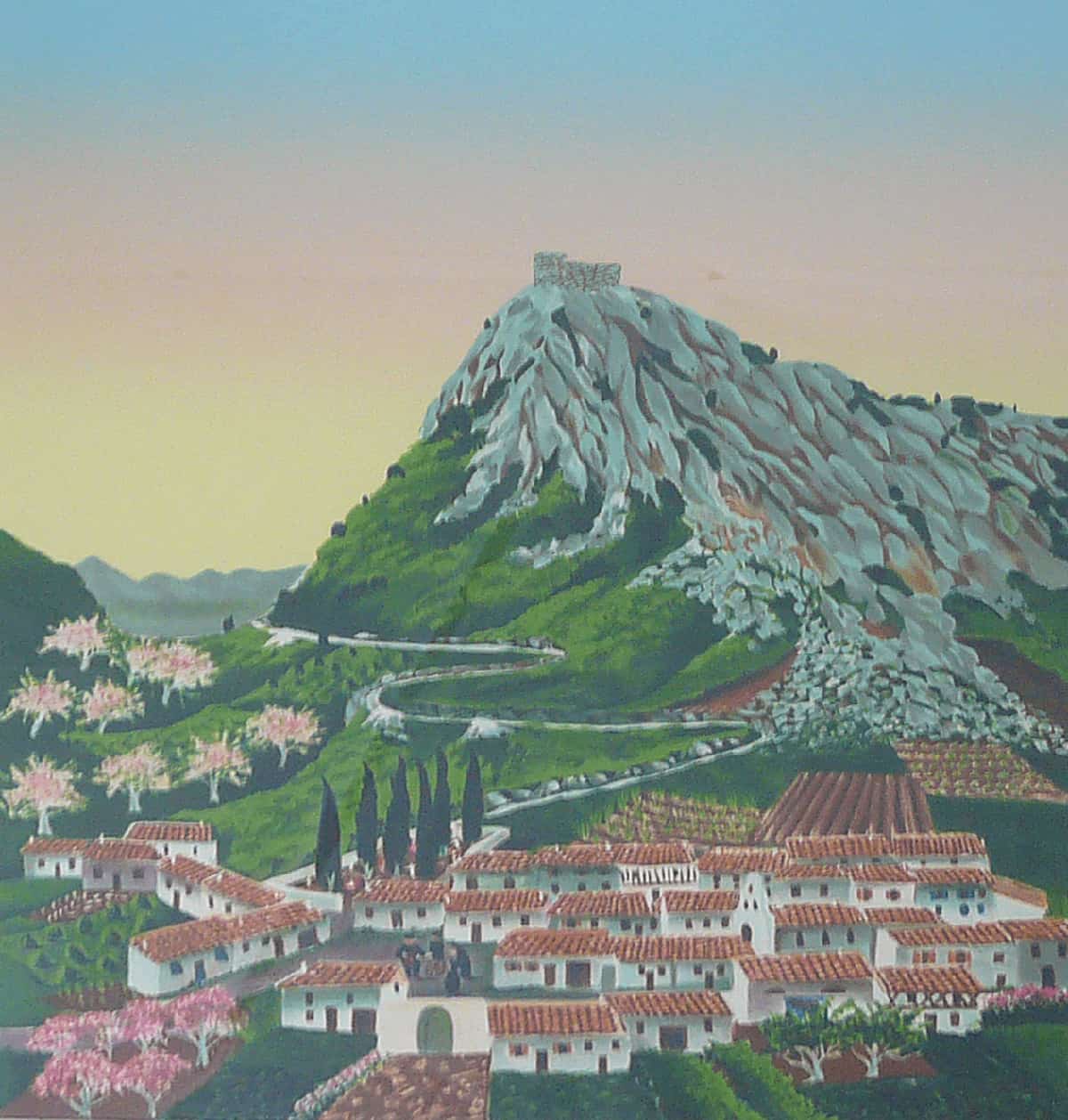 Lithographie Montségur au printemps de Mady de la Giraudière.