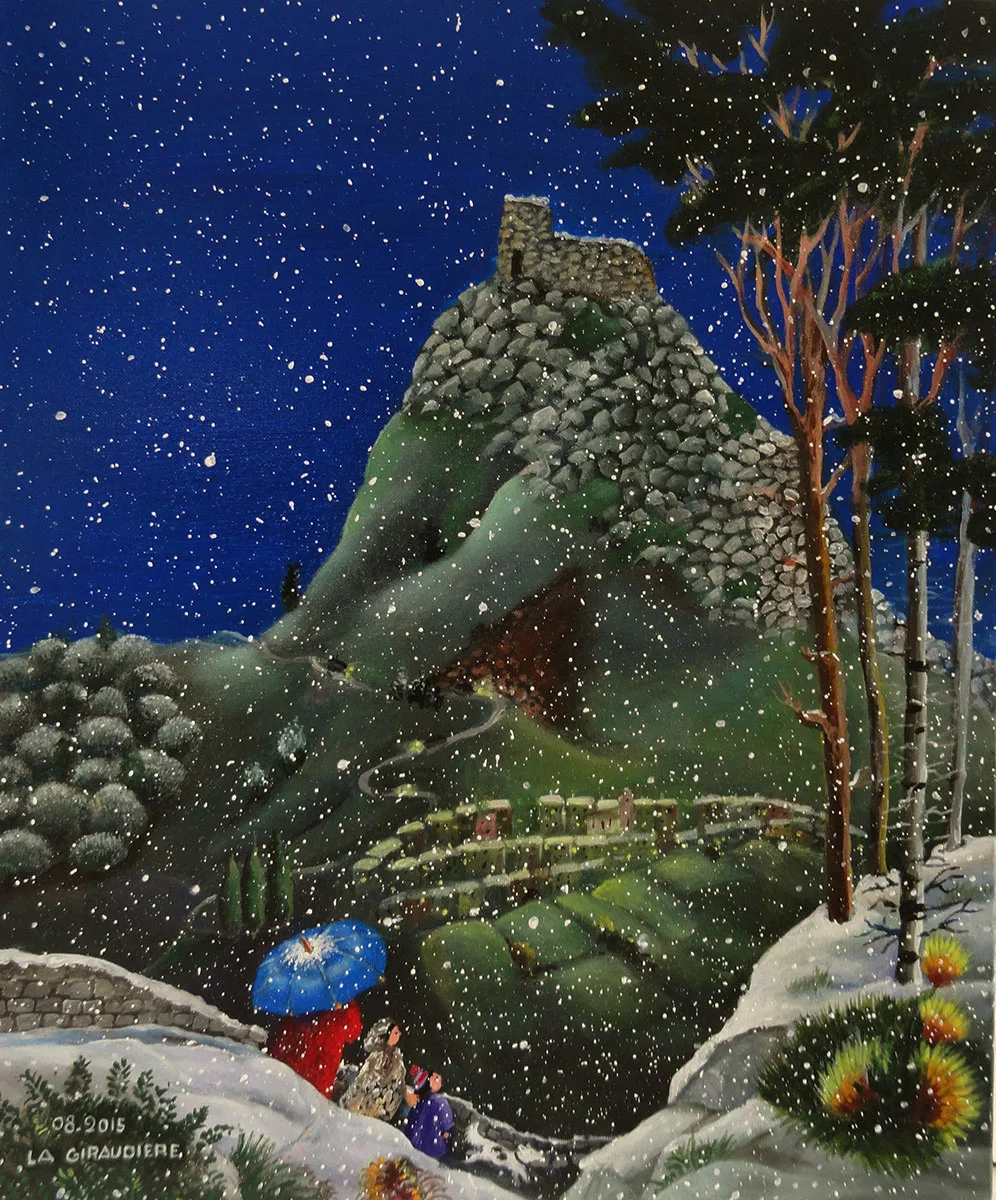 Montségur recouvert de neige (35 x 24) - 2500 € (vendu)