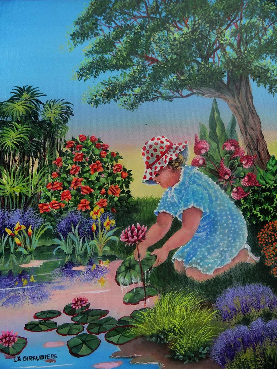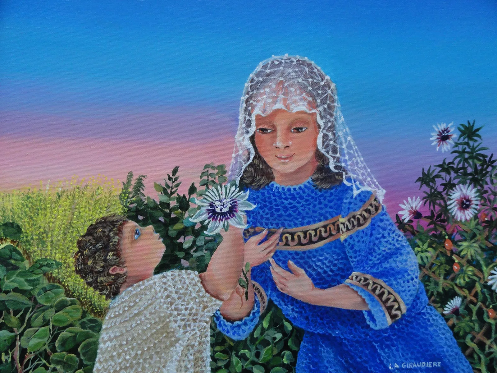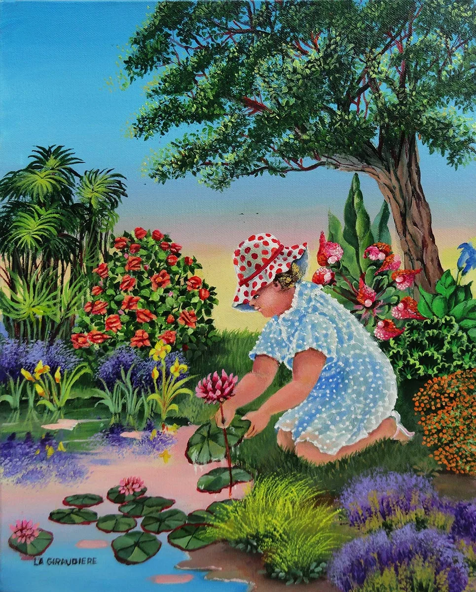 La petite fille et la fleur d'eau au printemps (41 x 33) - 3000 € (vendu)