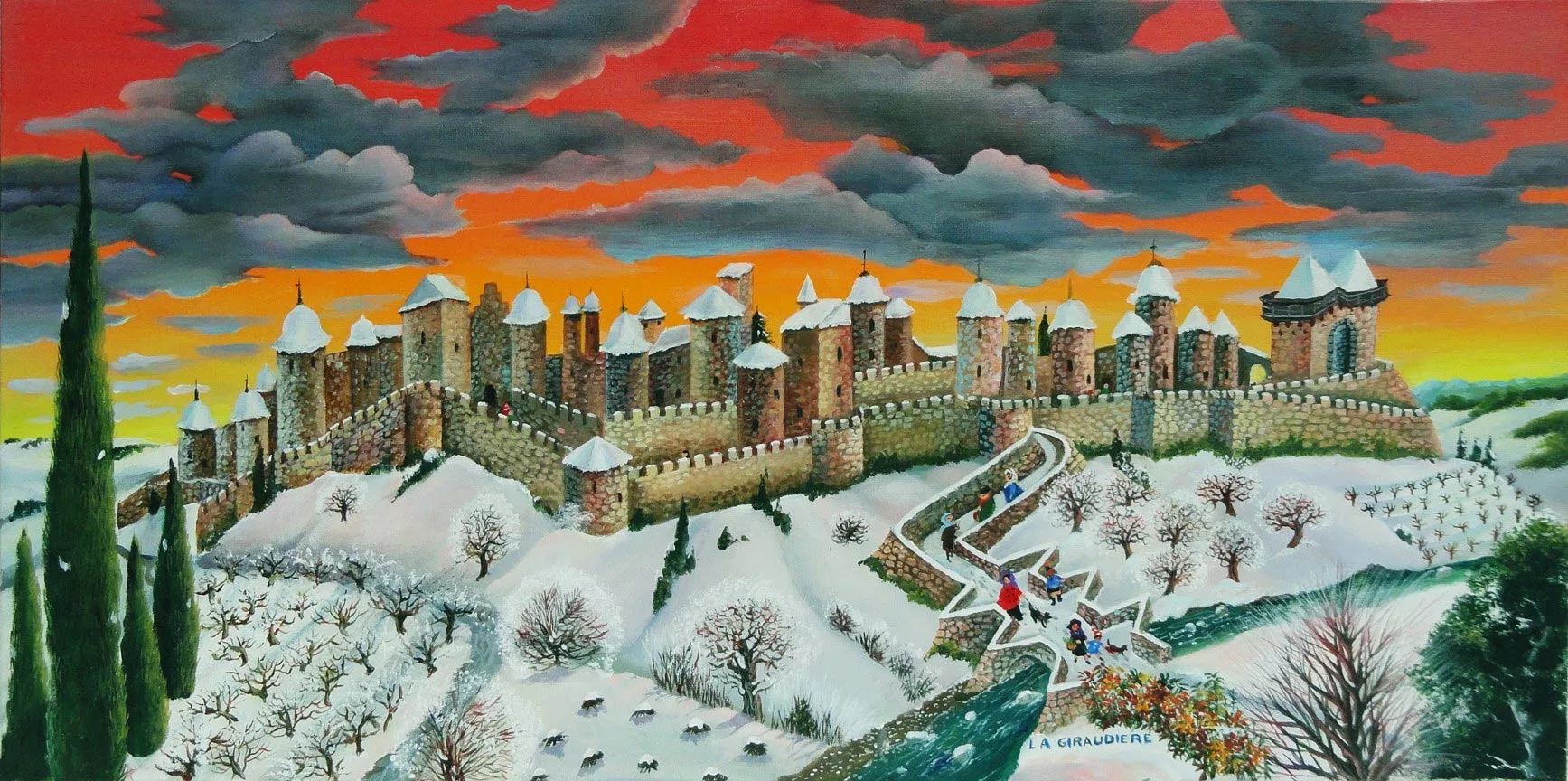 Carcassonne hiver (40 x 80) - 8000 € (vendu)